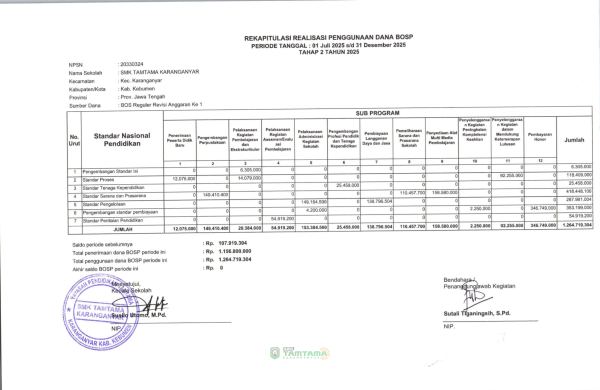 inilah Rekapitulasi Realisasi Penggunaan Dana BOSP Tahap 2 2025